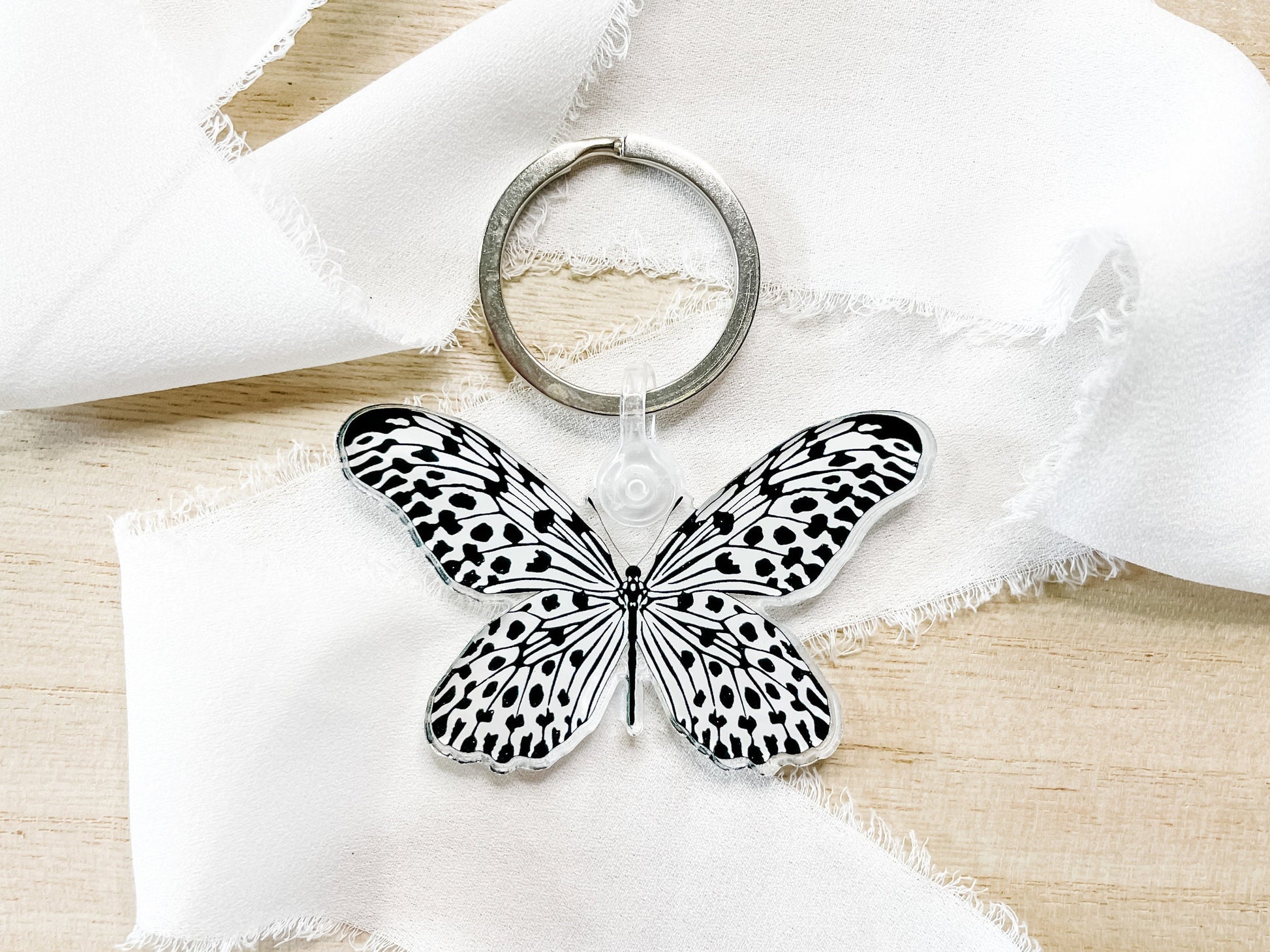 I hope you enjoy this hand-drawn black and white butterfly acrylic keychain! Perfect for a butterfly lover. This is a Malabar Tree Nymph breed of butterfly.