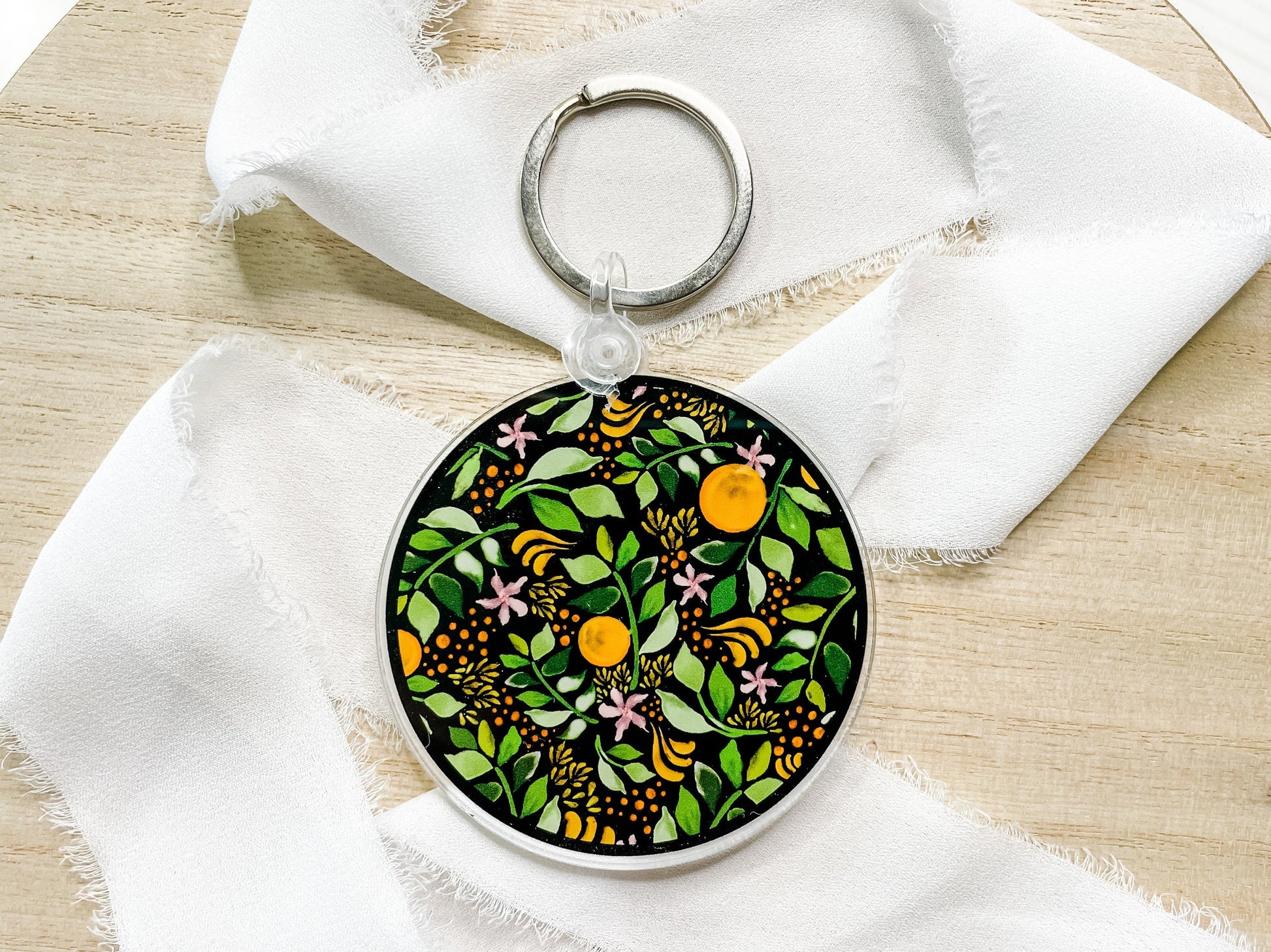 Black Orange Branch Print Acrylic Keychains