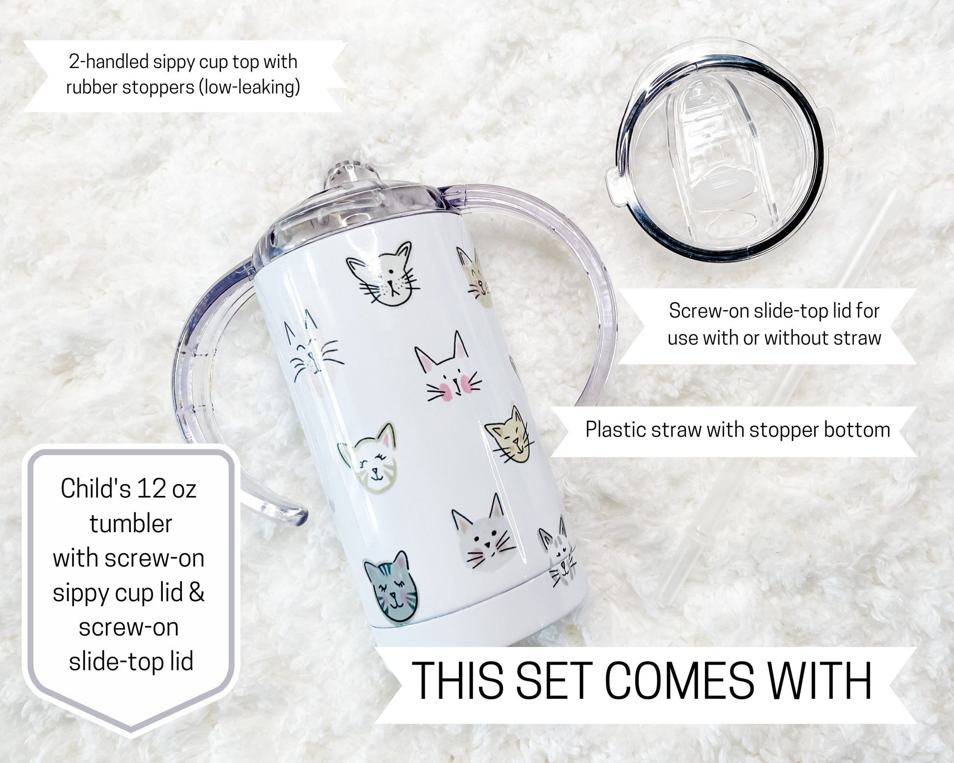 Cat Faces Sippy Child's Tumbler set with Straw