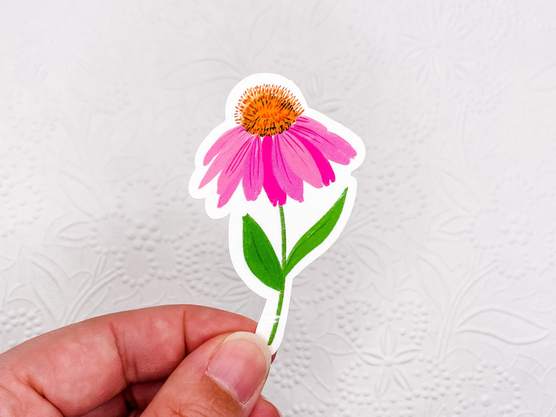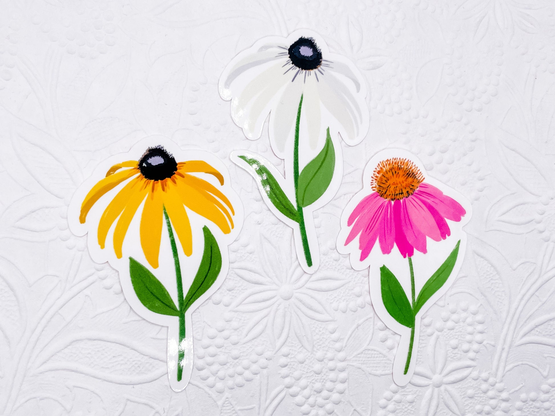 I've always loved Coneflowers and wanted to turn them into an illustration. These come individually or in a pack of all three. All my stickers are hand-drawn and original! These stickers are perfect for your water bottle, notebook, journal, laptop, or a million other places!