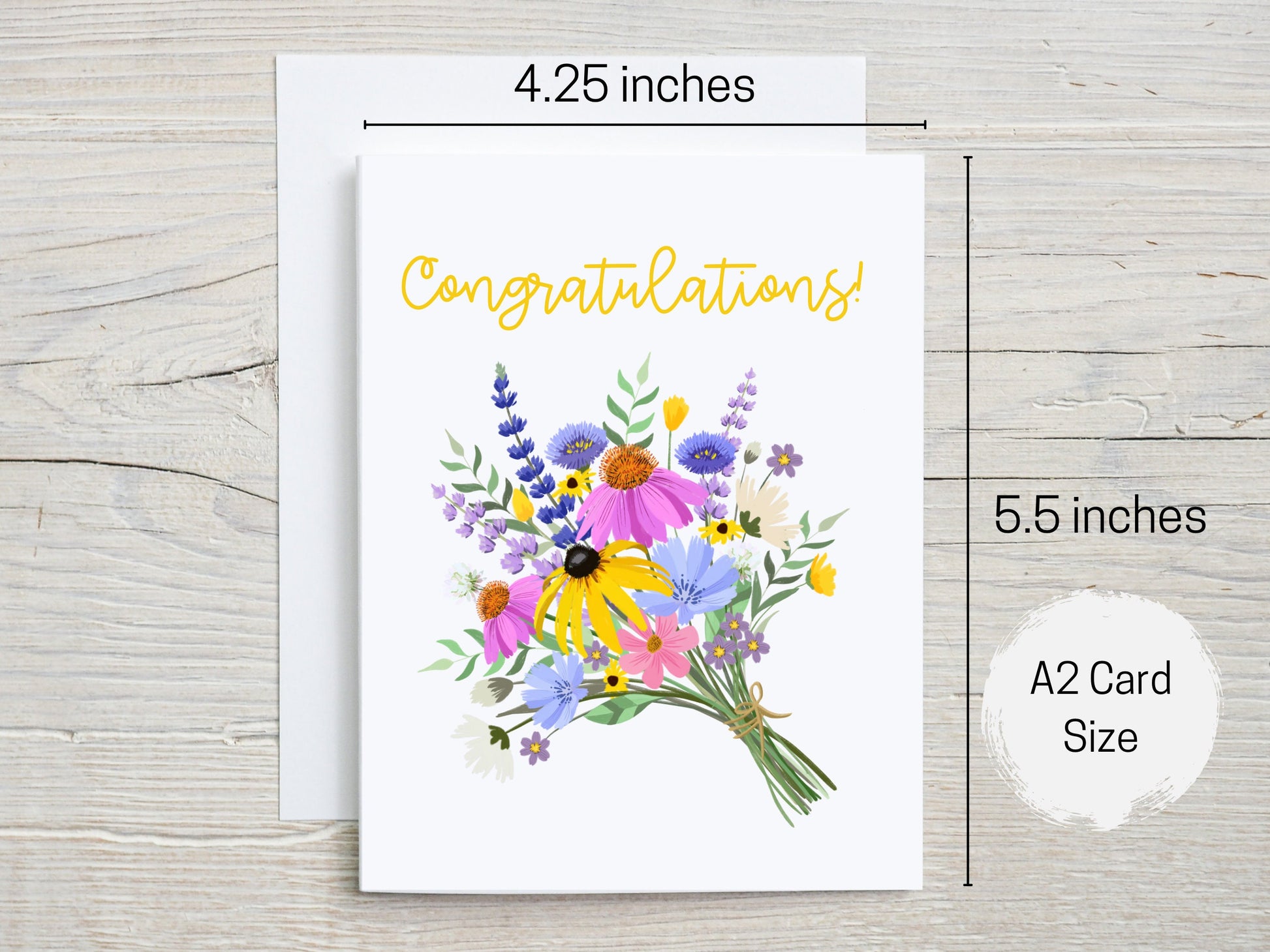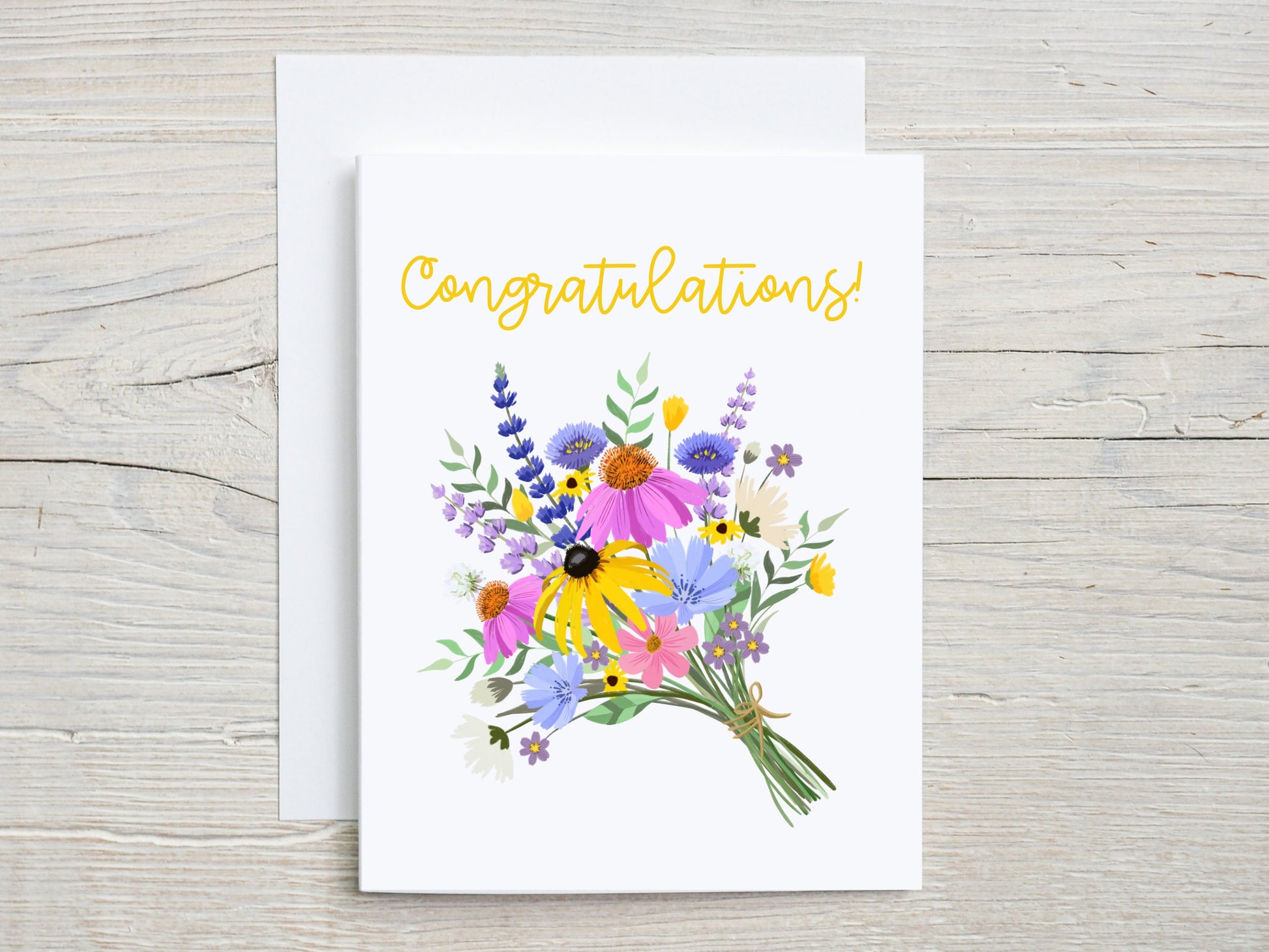 Congratulations Wildflower Bouquet Greeting Card, New Baby, Graduation, New Job, Promotion, Celebration, Adoption, New Home, Card for Her, Flower Lover