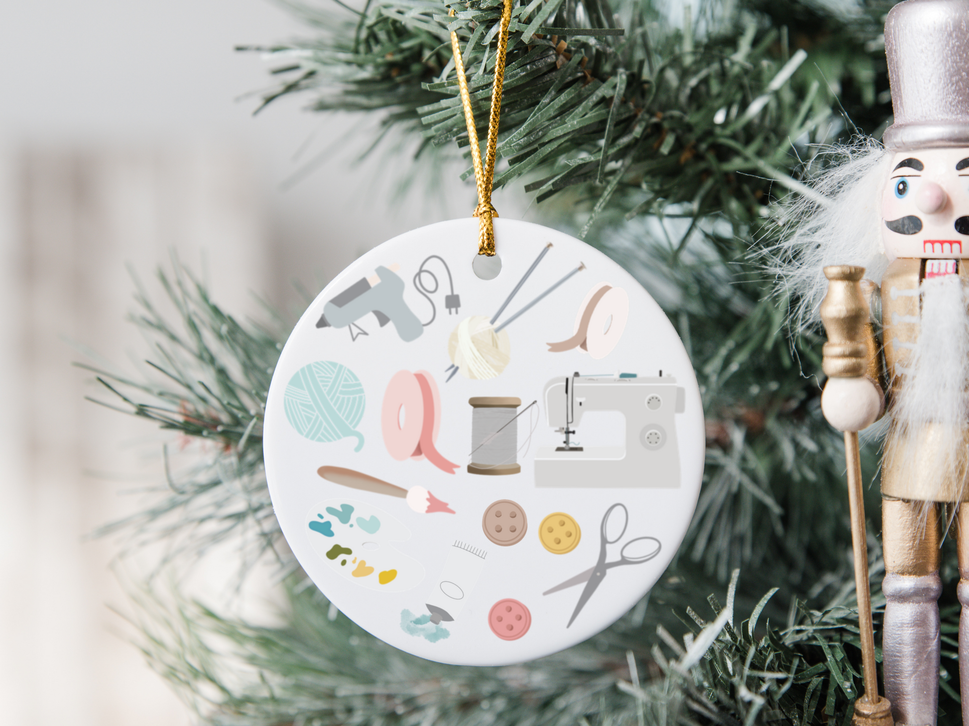 This is a perfect addition to your tree, or a gift for a Crafting lover. The image is hand-drawn by the shop owner and this ornament is handmade.