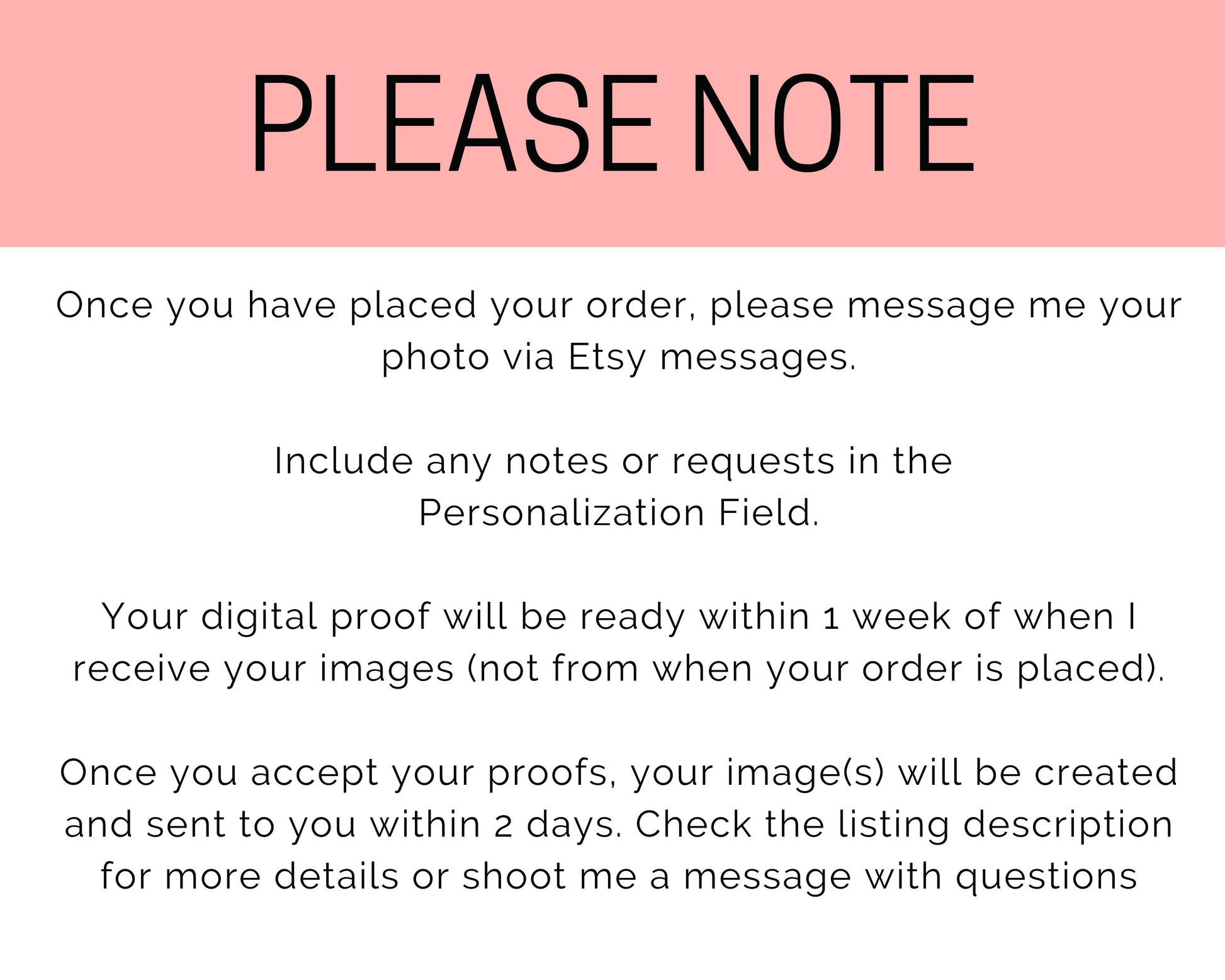 • Once you have placed your order, please message me your photo via Etsy Messenger.