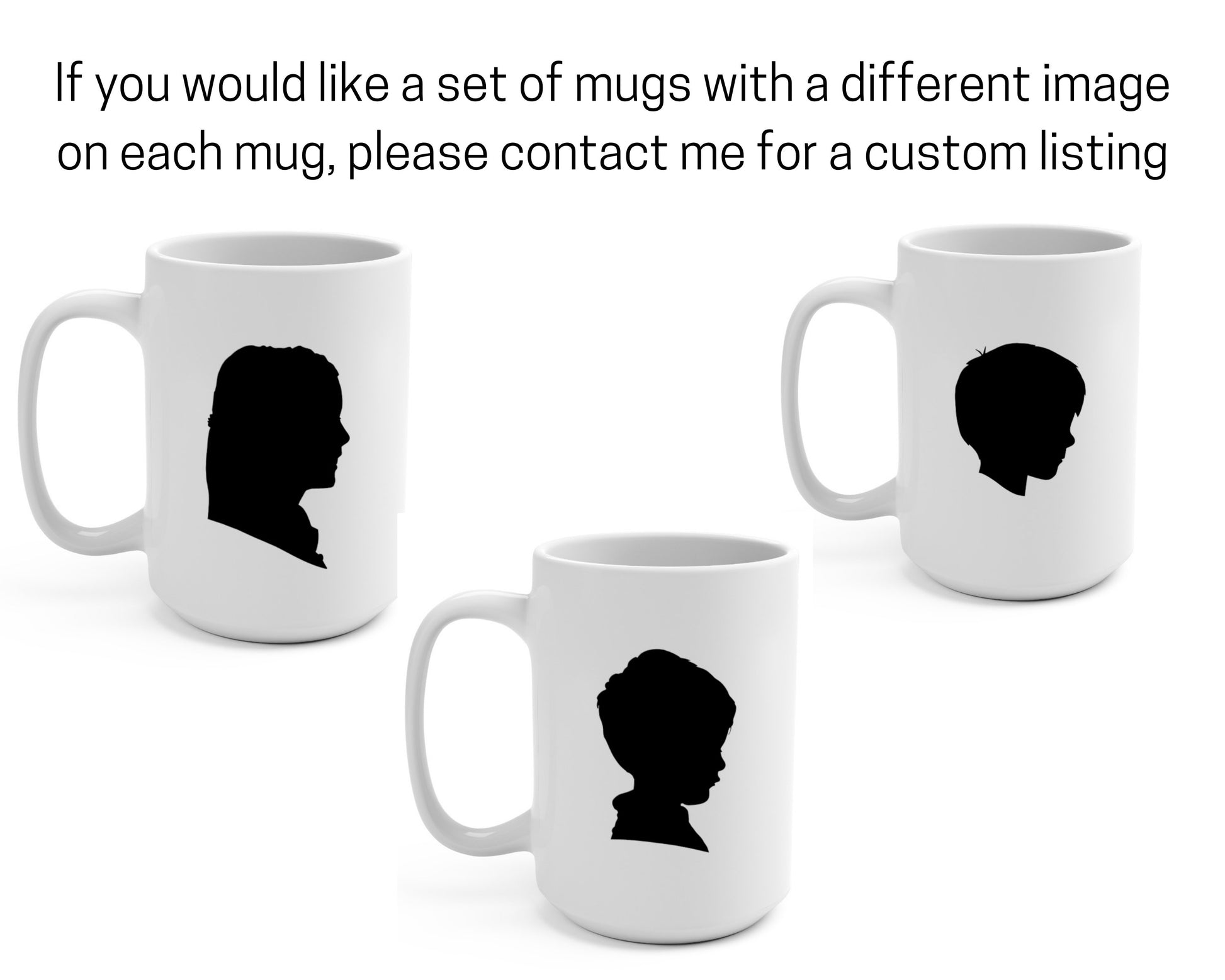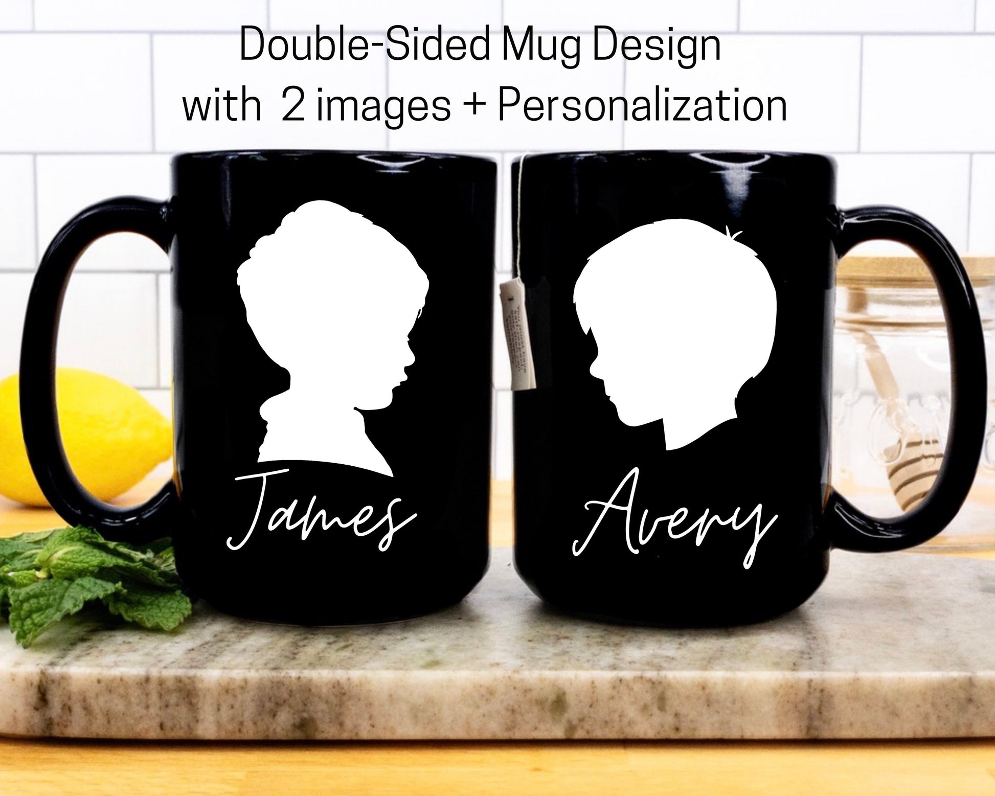 The silhouette image is hand-drawn and the image is permanently transferred onto a ceramic mug. This customized mug is perfect as a gift for a parent or grandparent, to show off your little ones, your pets, or to remember the kid's faces each year! Each image is hand-drawn digitally and hand-made by the shop owner. Here are some specifics: