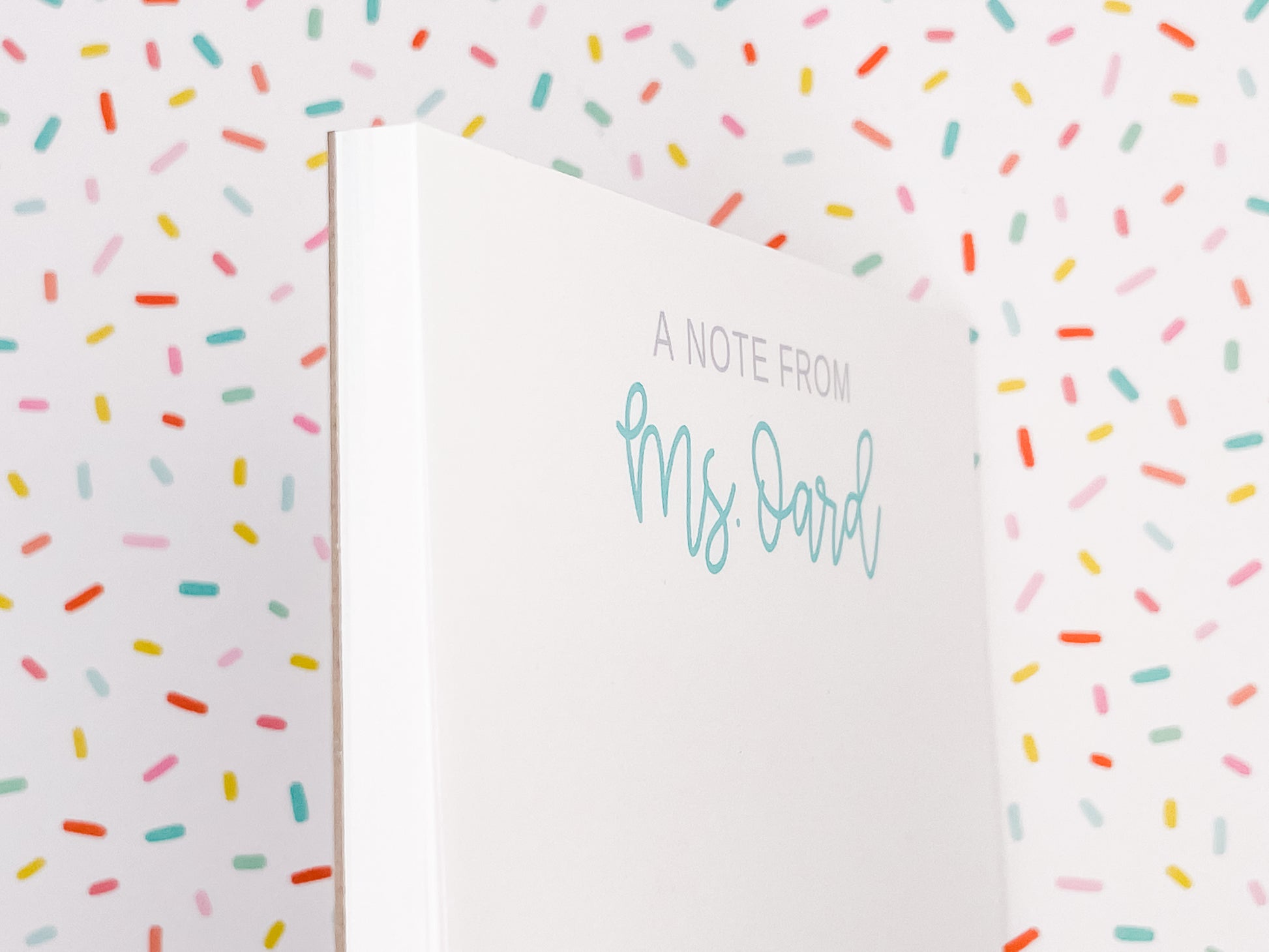 These are perfect to pair with colorful pens or a gift card (pens and gift cards not included). The last image in the listing images is an example of a teacher gift set- tag and pens NOT included.