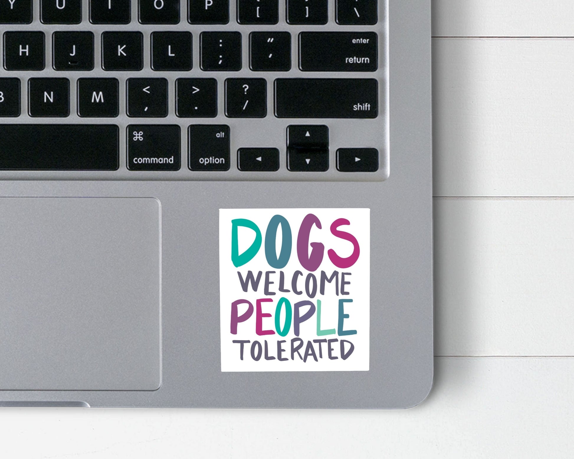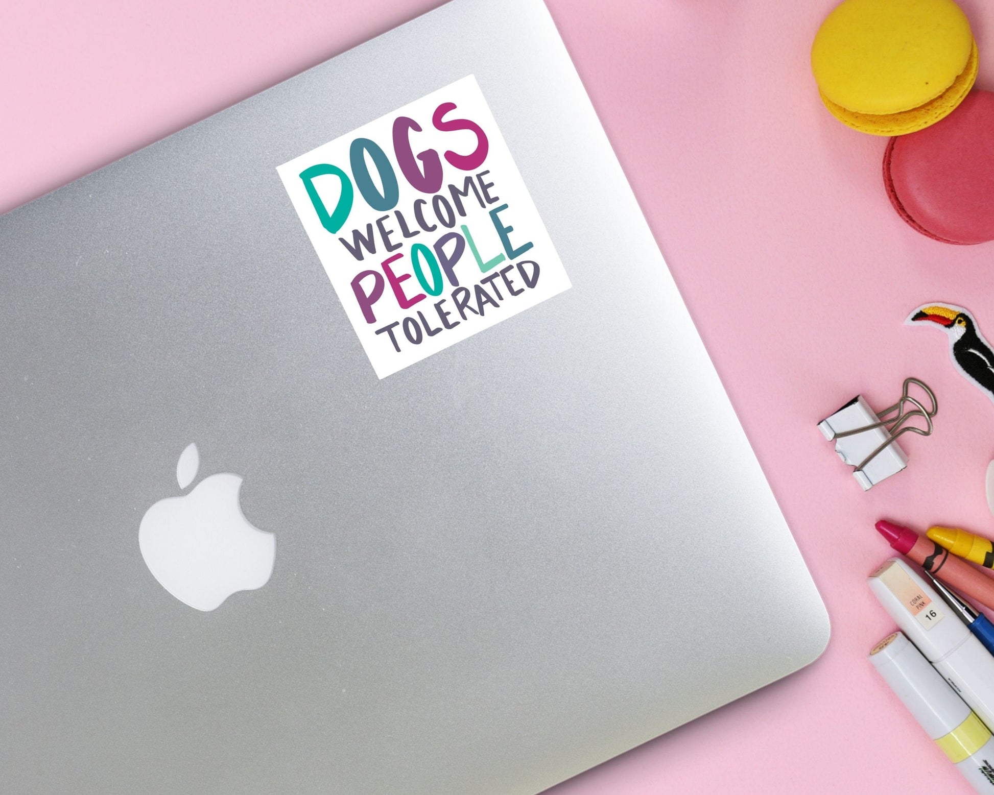 Decorate your water bottle, laptop, notebook, journal, skateboard, or whatever you want with this Dogs Welcome People Tolerated lettered sticker!