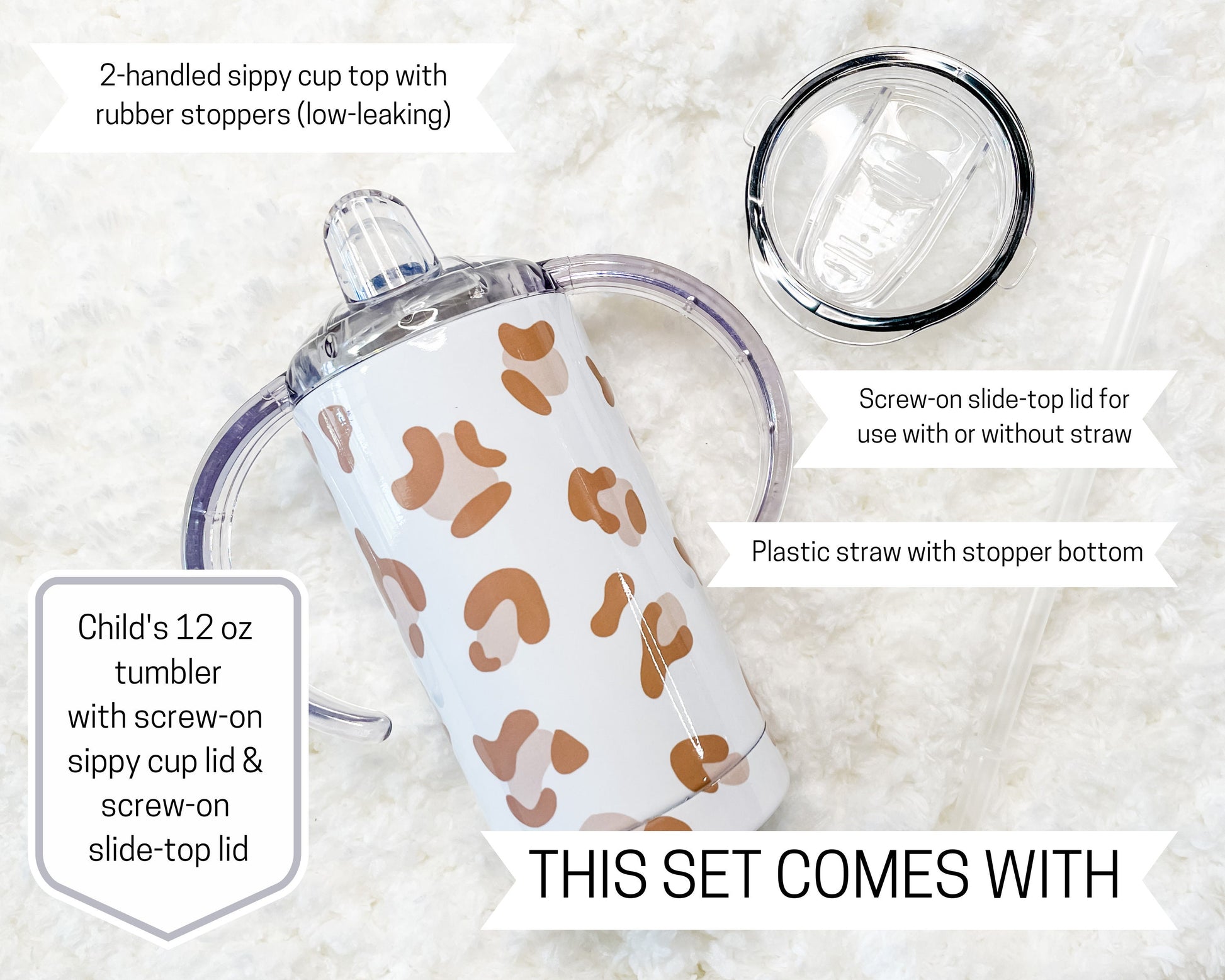 Dusty Pink Leopard Print Sippy Child's Tumbler set