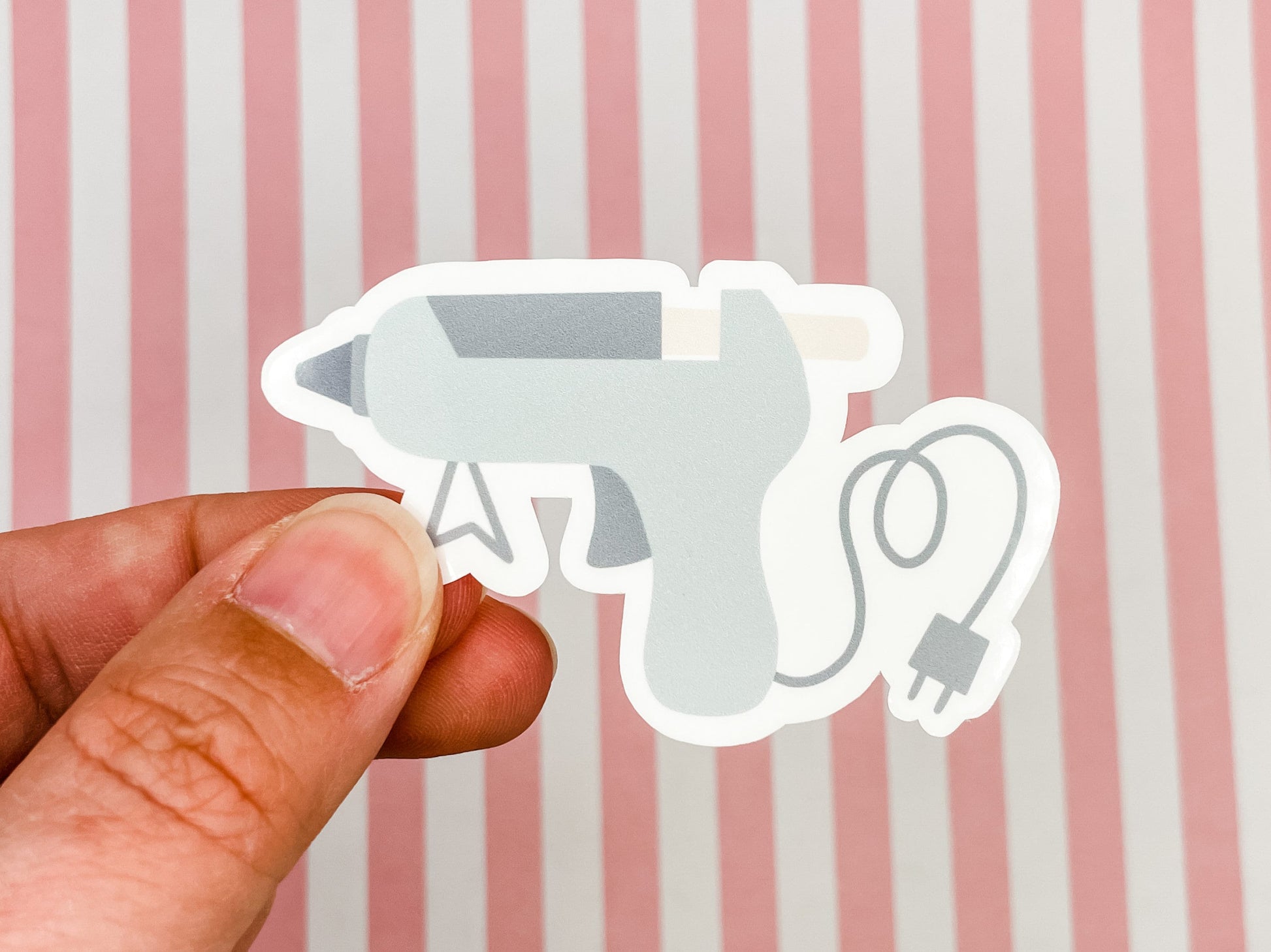 An illustrated glue gun sticker perfect for a crafting fan! All my stickers are hand-drawn and original! These stickers are perfect for your water bottle, notebook, journal, laptop, or a million other places!