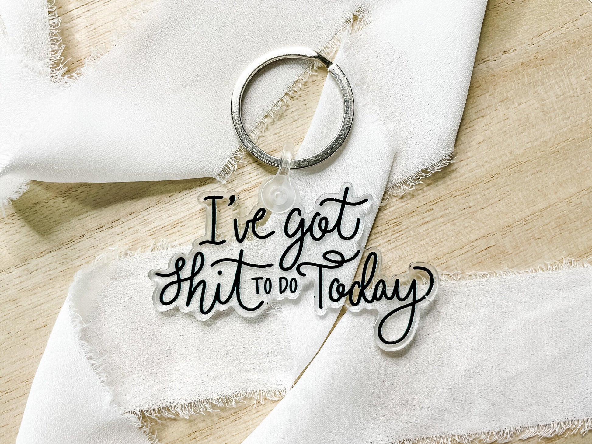 Hand-lettered I've Got Shit to Do Today acrylic keychains are here! A great funny gift for a procrastinator or just because.