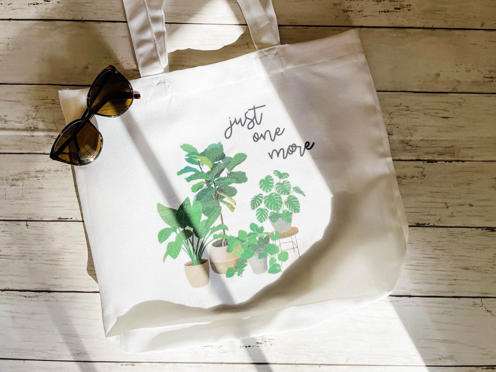 All images in my shop are hand-drawn and original! Enjoy your one-of-a-kind items and prints or enjoy gifting them to others. This tote bag features a colorful plant print with a fiddle fig, dieffenbachia, monstera, and pothos plants. This is perfect for the upcoming outdoor market and shopping season.