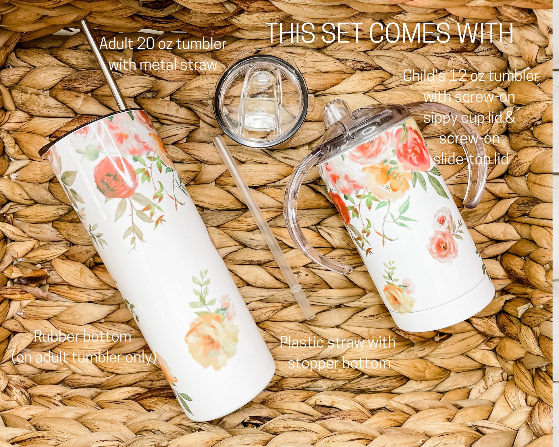 Mommy & Mini Watercolor Floral Matching Tumbler set