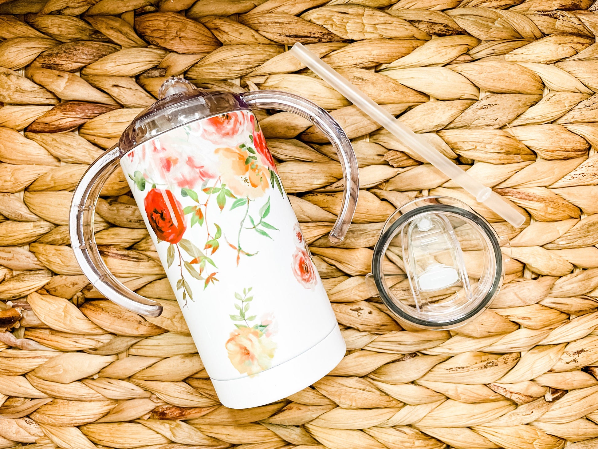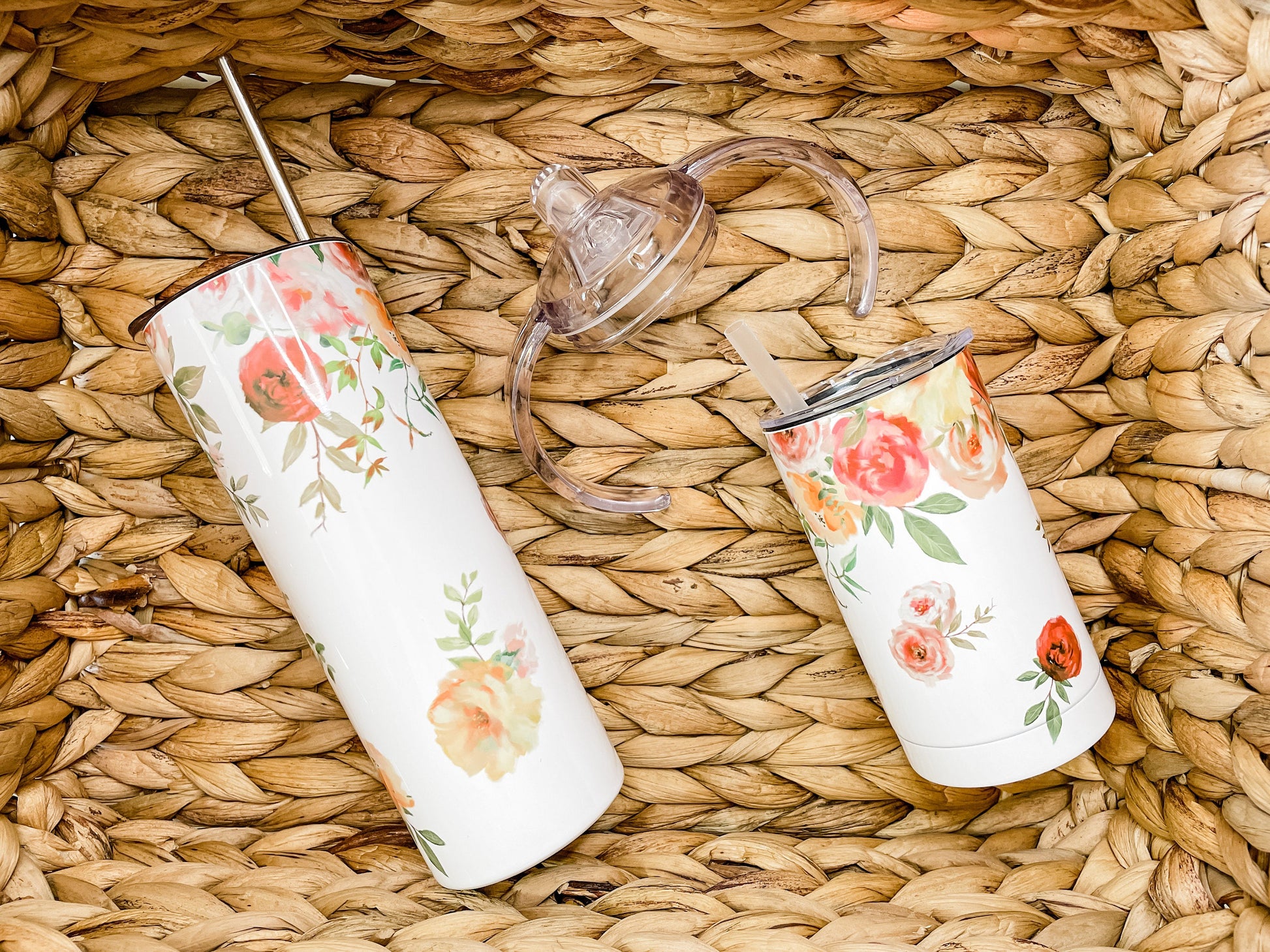 Matching Mama and Baby or Mama and Mini Tumbler set! This beautiful watercolor style Tumbler features a floral design wrapped around the top and through the body of the tumbler. The pattern creates a full-wrap, no-seam design.