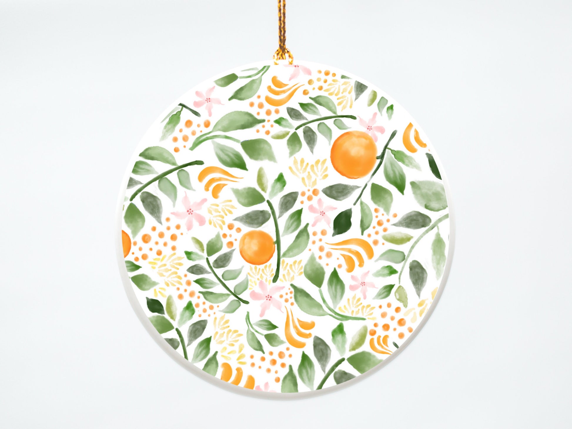 Orange Branch Pattern 3 inch Ceramic Ornament