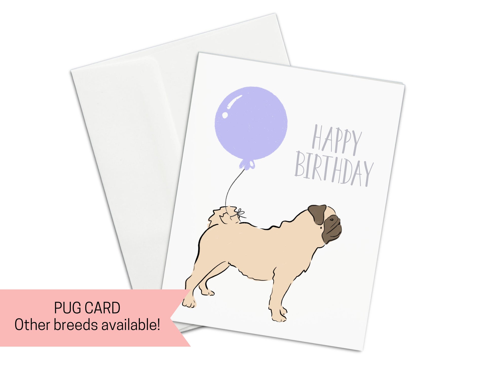 Pug Happy Birthday Card, Human Birthday, Gotcha Day Dog Adoption, Celebration, Dog Birthday, Dog Lover, Card for Him, Card for her