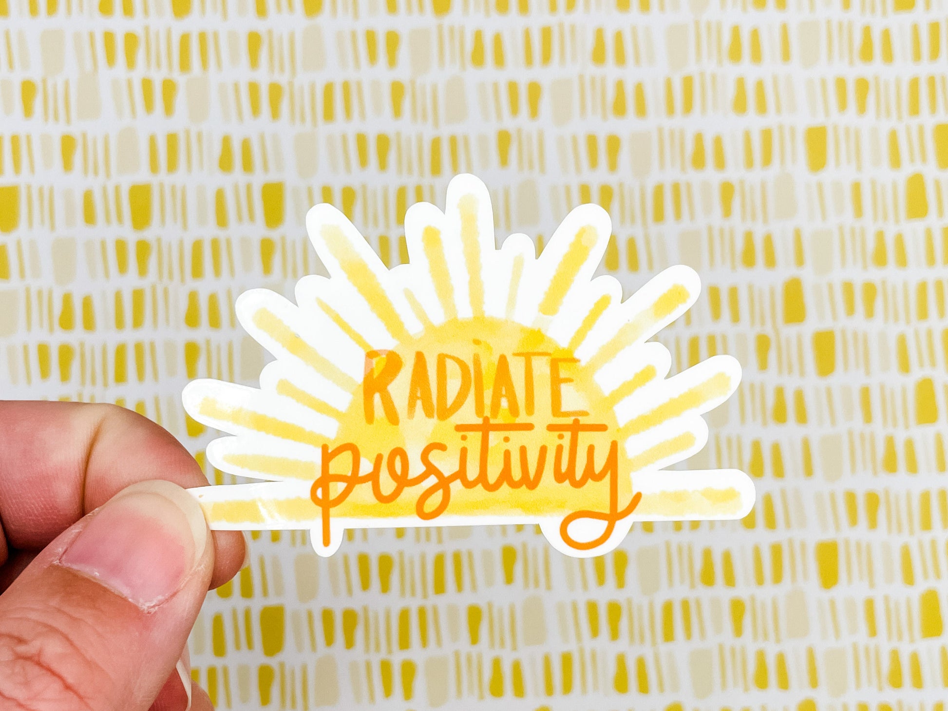 Radiate Positivity wherever you go! A great inspirational sticker to add to your collection. All my stickers are hand-drawn and original! These stickers are perfect for your water bottle, notebook, journal, laptop, or a million other places!