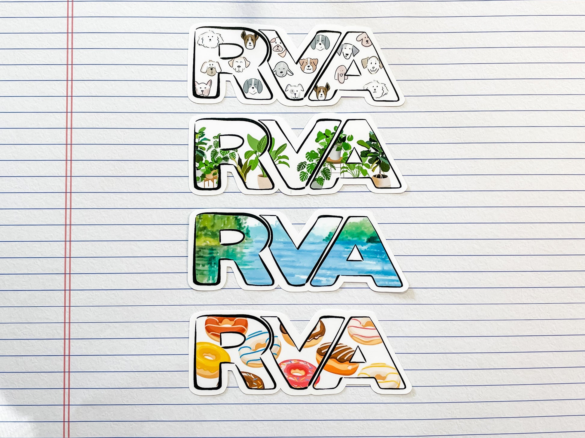 Richmond Virginia RVA Vinyl 4 inch sticker, River City, Donut, Dog Faces, Plant Lover, Plants, City Sticker