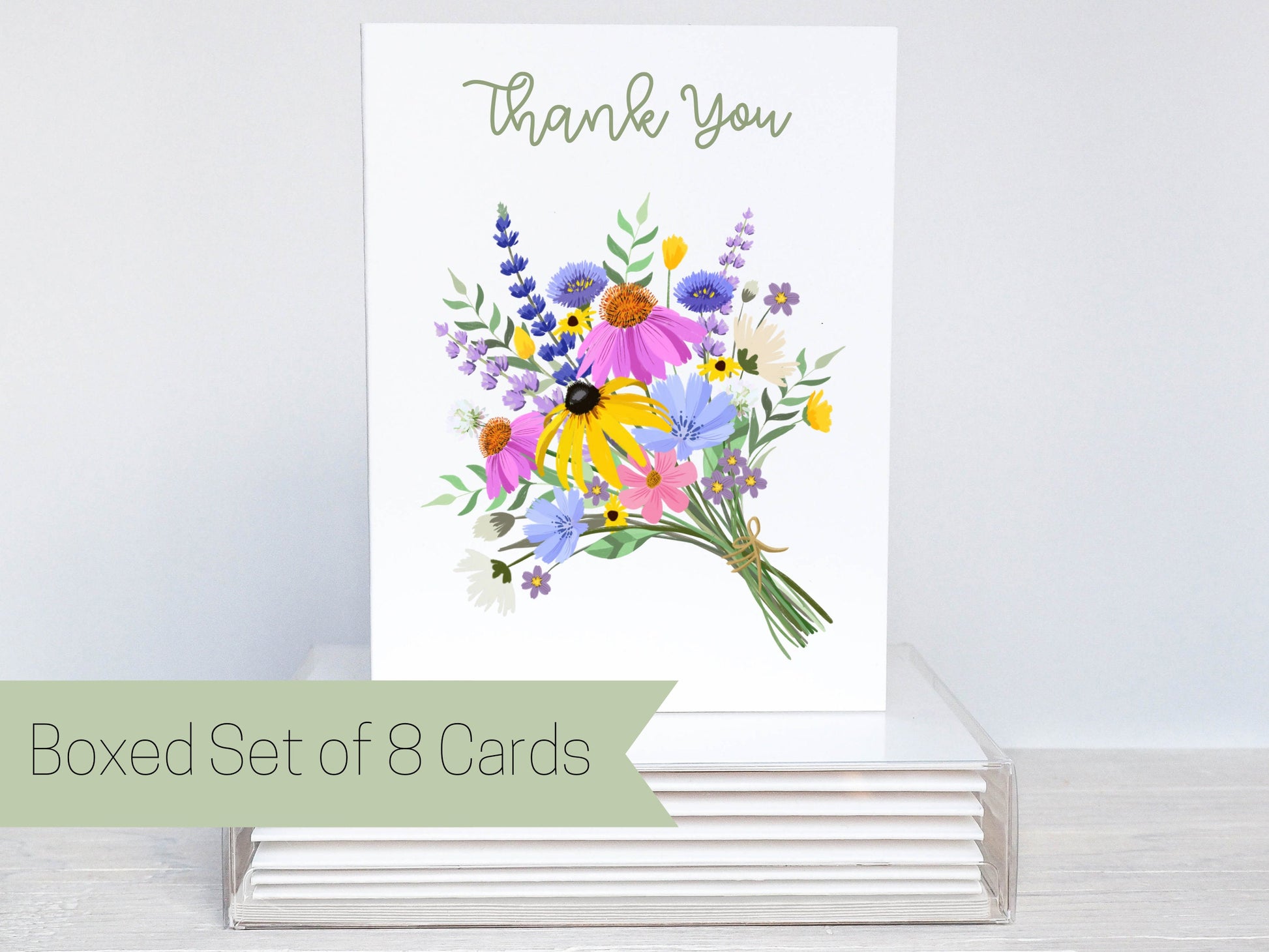 Set of 8 Thank You Wildflower Bouquet Greeting Cards, Gratitude, Simple Card, Thank You Note, Celebration, Card for Her, Flower Lover, Notecards