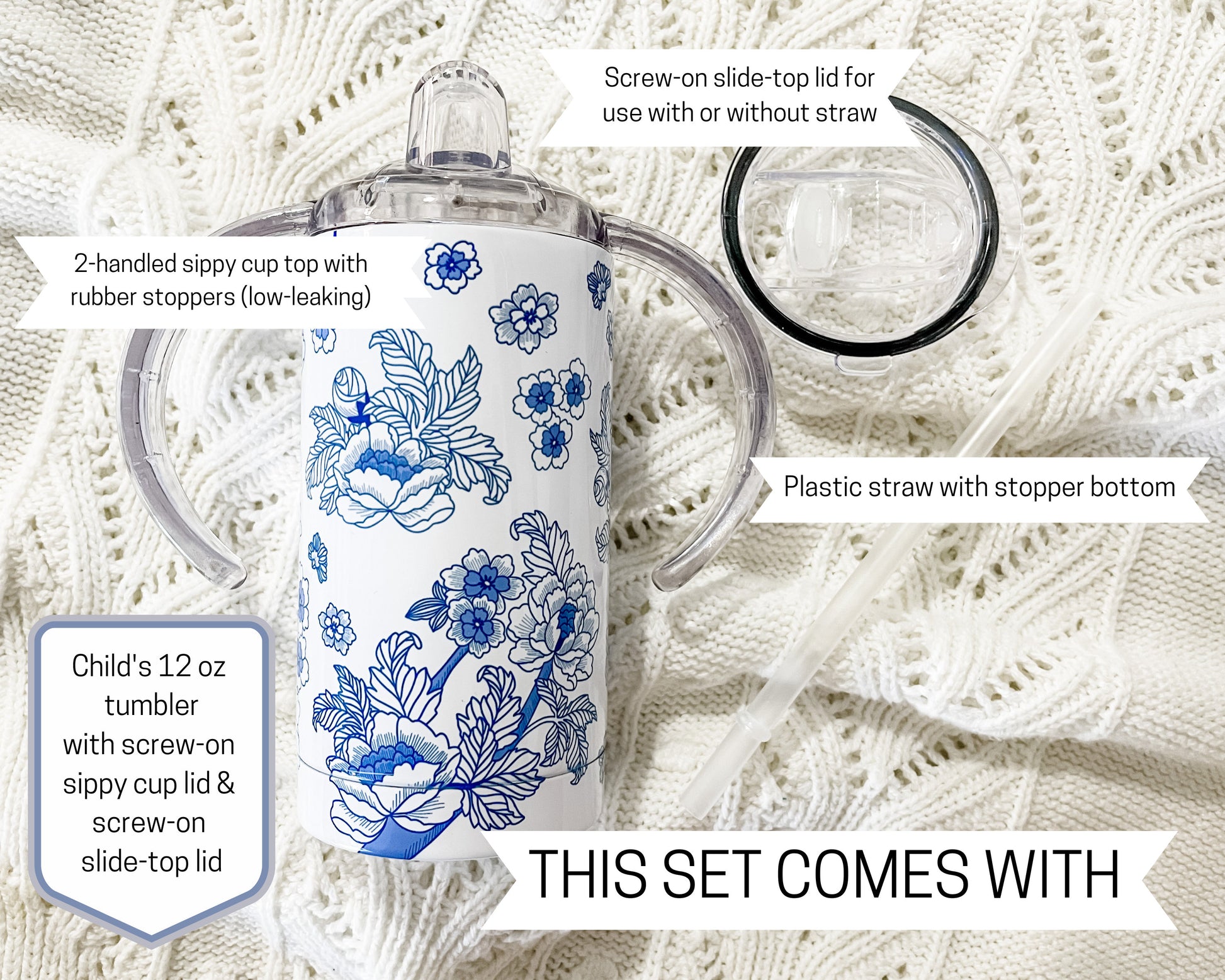 Blue and White Chinoiserie Print Sippy Tumbler Set