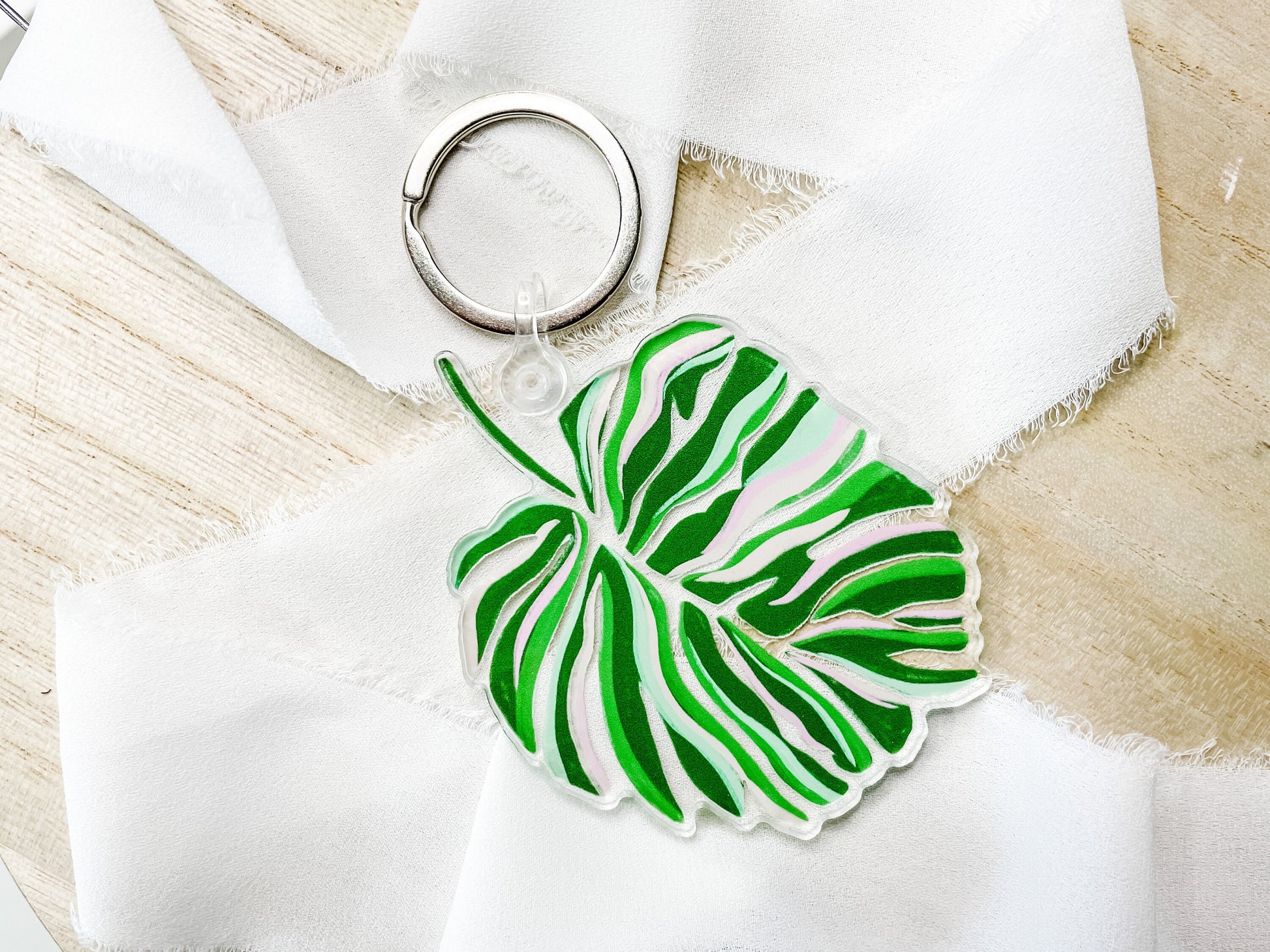 This hand-drawn colorful tropical leaf image is a new addition, and it is now in acrylic keychain form! Perfect for those flower and plant lovers!