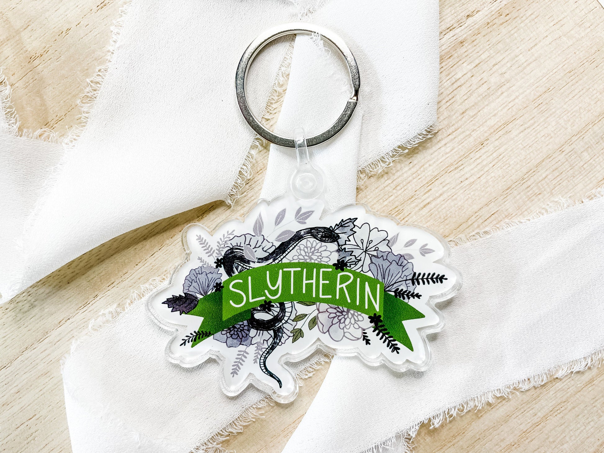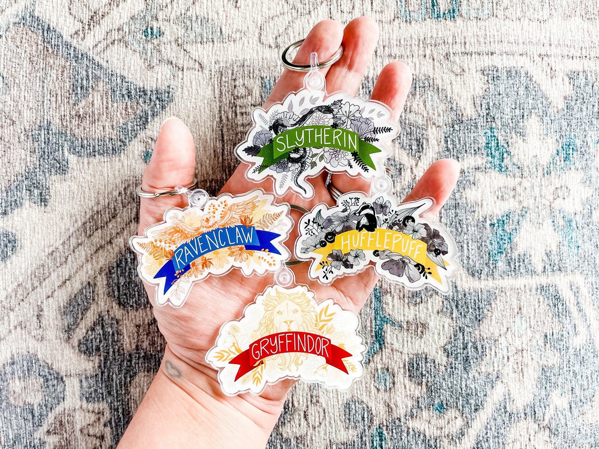 Hand-drawn Wizard world inspired fan art clear acrylic keychains are here! Proudly display your House on your keys, backpack, or purse.